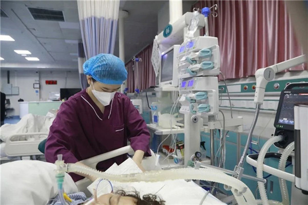 护士长张海朋说:“急诊监护的病人都比较重,瞬息万变的病情全靠医护人员仔细观察,不敢有一秒钟懈怠。”她介绍,EICU目前有4名医生,15名护士。收治了13名患者,其中5名患者上了呼吸机。一个护士要护理两位上机患者,已经到了极限。医护人员已经吃住在科室半个月,一个班要连续工作将近20个小时。